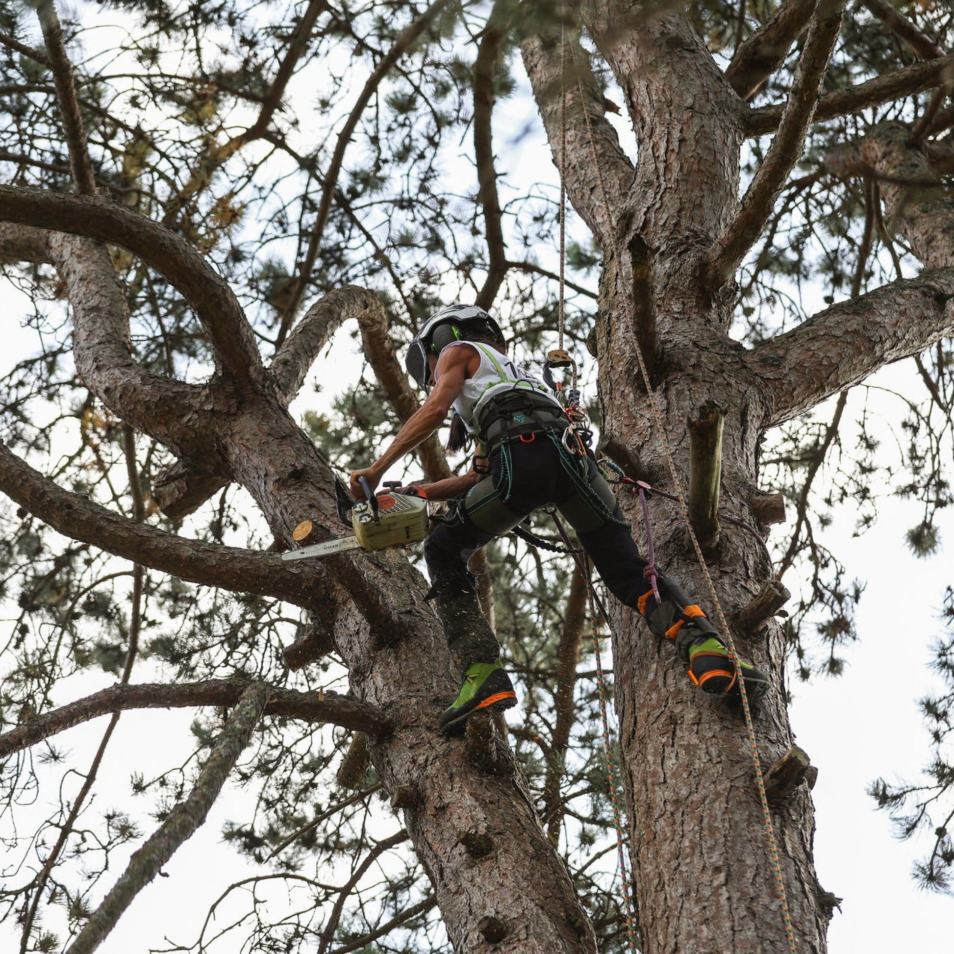 - Kevlar-reinforced panels on the front and ankle guard against scrapes, abrasions, and daily wear from tree work and debris.